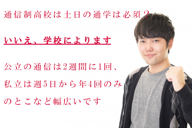 - 公立通信制高校:週1日の登校が基本(主に土曜または日曜)